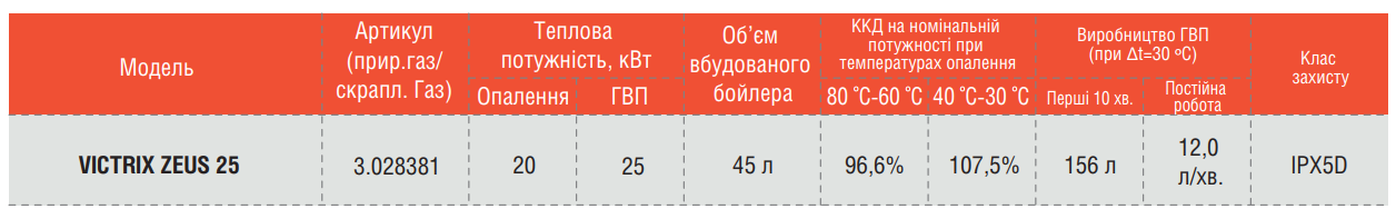 - Котёл Victrix Zeus 25 может отопить дом площадью от 35 до 250 м² (настраивается на необходимую площадь отопления)